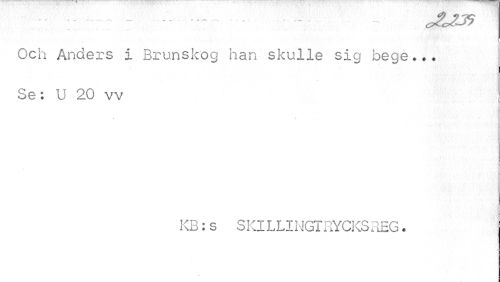 //// Och Anders i Brunskog han skulle sig bege... Se: U 20 vv //// KB:s SKILLINGTRYCKSREG. ////