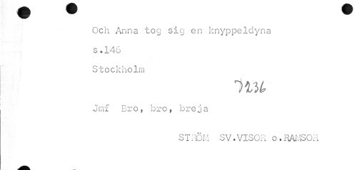 //// Och Anna tog sig en knyppeldyna s .146 //// i //// Stockholm //// i //// Jmf Bro, bro, breja //// STRÖM SV.VISOR o.RAMSOR ////