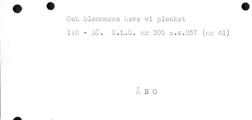 //// Och blommorna hava vi plockat //// 1:8 - BÖ. S.L.S. nr 205 a.s.257 (nr 41) //// ÅBO ////