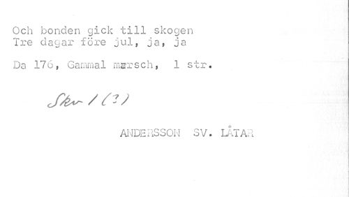 //// Och bonden gick till skogen Tre dagar före jul, ja, ja //// Da 176, Gammal marr sch, 1 str. //// ANDERSSON SV. LÅTAR //// j //// i * ////