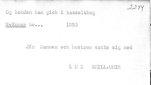 //// Jjyy //// Og bonden han gick i hasselskog //// Svärmor ho... 1853 « //// . Jfr Mannen och hustrun satte sig ned //// L U B SKILL.UNIK //// ¦ ////