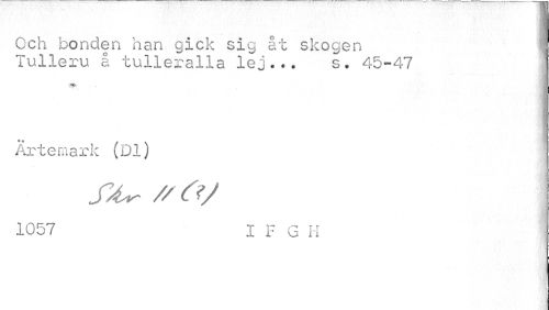//// Och bonden han gick sig åt skogen J //// Tulleru å tulleralla lej... s. 45-47 //// Artemark (Di) //// fA^Z/O/ //// 1057 I F G H ////