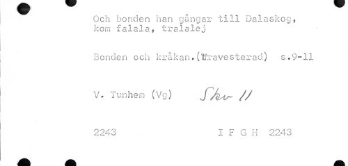 //// Och bonden han gångar till Dalaskog, kom falala, tralalej //// Bonden och kråkan.(Wravesterad) s.9-11 //// V. Tunhem (Vg) J A^s- // //// 2243 I F G H 2243 ////