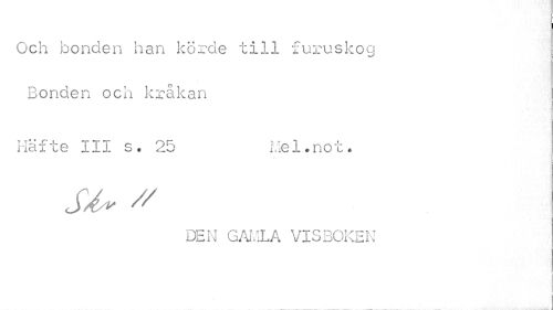 //// Och bonden han körde till furuskog Bonden och kråkan //// Häfte III s . 25 Lie 1. not * //// S.// //// DEN GAMLA VISBOKEN ////