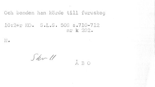 //// Och bonden han körde till furuskog //// 10:2+r KO. S.L.S. 50S s.710-712 //// nr k 202. //// N. I //// A B O //// < ////