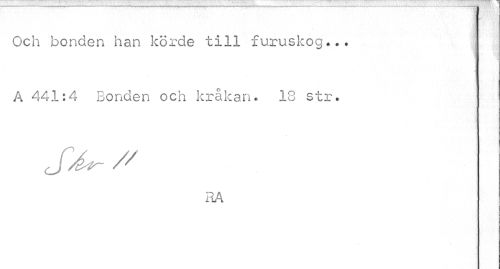 //// Och bonden han körde till furuskog... I I //// A 441:4 Bonden och kråkan. 18 str. //// RA ////