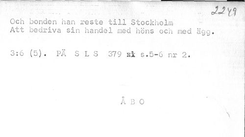 //// - _ - O^ol £ f //// Och bonden han reste till Stockholm //// Att bedriva sin handel med höns och med ägg. //// ¦1 .Må //// 3:6 (5). PÄ S L S 379 si s.5-6 nr 2. //// T V; ' | i //// ÅBO //// \ t 4 ////
