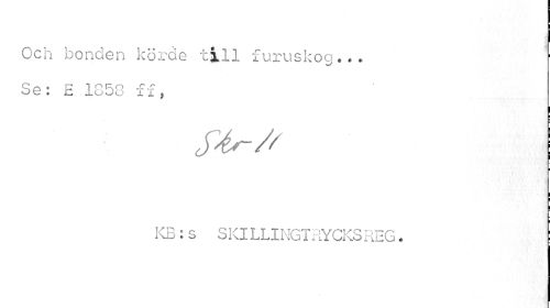 //// Och bonden körde till furuskog.,. I //// Se: E 1858 ff, //// I //// S'4r-/f | //// I i //// KB:s SKILLINGTRYCKSREG. ; ////