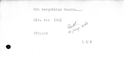 //// * //// Och borgmästar Munthe .. . Div. s:r (Srn) //// 4786:84 //// L U F //// % //// 4 //// \ ////