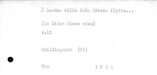 //// o- //// A bruden ville från Missen flytta... //// (2n liten Nisse visa) s • 1 //// * //// Skillingmark (VI) //// 789 I F G H ////