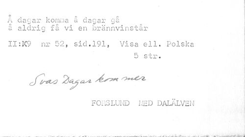 //// A dagar komma å dagar gå å aldrig få vi en brännvinstår //// II:K9 nr 52, sid.191, Visa ell. Polska //// 5 str. FORSLUND MED DALÄLVEN //// ' Jjm* - -j. . - a. - ___/•. i. i-**.V åi ¦étf&.cjiåé&i-':;. -i V - V1 -1" viÉwr -i ^m ifc-^i 'l'i nr rf ////