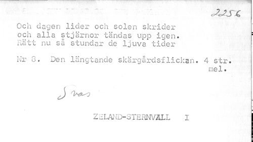 //// ~ I' cZJJTjQ //// Och dagen lider och solen skrider //// och alla stjärnor tändas upp igen» : //// Rätt nu så stundar de ljuva tider //// Nr 3- Den längtande skärgårdsflickan. 4 str. //// me 1. //// Z c LAND-S TERNVÅLL I ////