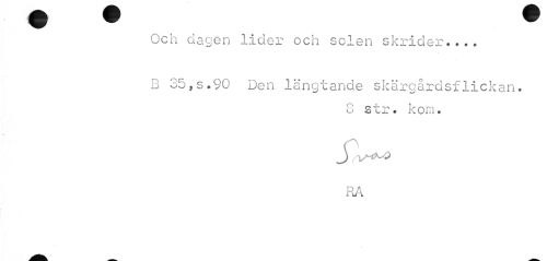 //// Och dagen lider och selen skrider... //// B 35,s.90 Den längtande skärgårdsflickan. //// 8 str. kom. //// i //// RA ////