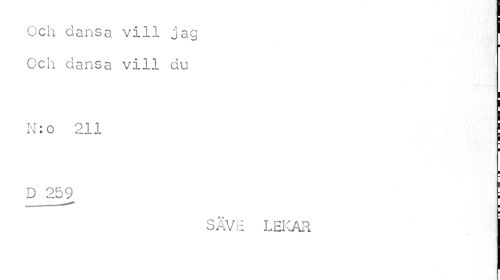 //// Och dansa vill jag ' //// ¦ //// Och dansa vill du N:o 211 //// I I //// D 259 ! //// ¦ //// SÄVE LEKAR ////