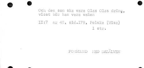 //// Och den som ska vara Olas Olas dräng, visst bör han vara vaken //// 11:7 nr 43, sid.179, Polska (Visa) //// 1 str. //// F O MS LUND MED DALÄLVEN ////
