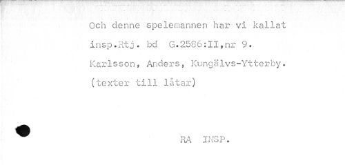 //// Och denne spelemannen har vi kallat insp.Rtj. bd G.2586:II,nr 9. Karlsson, Anders, Kungälvs-Ytterby. (texter till låtar) //// ^ ra INSP. ////