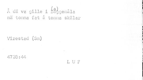 //// k dä va gille i lia^gemåla ! //// mä tomma fat å tomma skalar //// Virestad (Sm) i //// i //// 47 35 :44 ; //// L U F ////