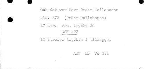 //// Och det var Herr Peder Folleboson //// ^ sid. 373 (Peder Palleboson) //// 37 str. Arvv. tryckt 30 //// DGF 392 //// 10 strofer tryckta i tillägget //// APW MQ Mc- O • 1 Pil in I .iO V b • JL //// » //// ?— x" ////