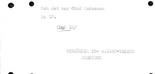 //// ^^ Och det war Olof Makaszon //// Nr 32. //// (DgF 10/ //// VISBÖCKER 15- o.1600-TALENS //// RUDEBECK ////