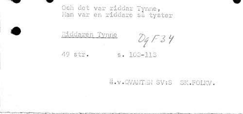 //// Och det var riddar lynne * Han var en riddare sa tyster //// ^^ Riddaren lynne Z //// v //// 49 str. s. 103-113 //// i.v.QVANT3N SV:S SK.FOLKV. //// - . ---r—r-*---—r ___„___—---___.__^___N-,—___-___ —, ////