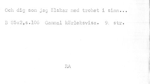 //// Och dig som jag älskar med trohet i sinn... B 85:2,s.106 Gammal kärleksvisa. 9. str. //// i //// i //// RA ////