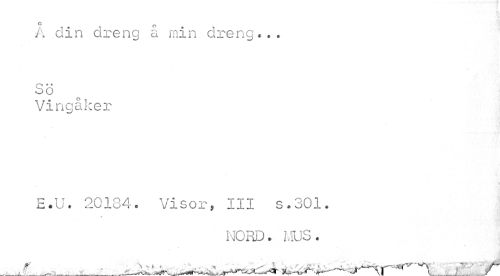 //// C c //// A clin dreng a min dreng#*. oo //// Vingåker //// E.U. 20184. Visor, III s.301. //// NORD. MUS. //// ... ////