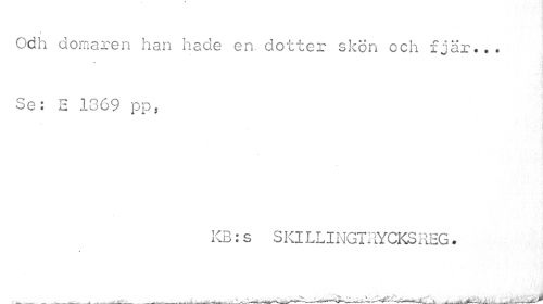 //// I //// Odh domaren han hade en dotter skön och fjär... //// * //// Se: 2 1369 pp, //// KB:s SKILLINGTRYCKSREG. //// .. - ' „ ___^__5=---mrné.mu \ •. . £ t i> : d.M ////