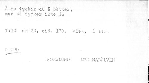 //// o //// A du tycker du a bätter, //// men sä tycker inte ja 1 //// • ¦ //// ¦ //// 1:10 nr 23, sid. 173, Visa, 1 str. //// D 220 //// FORSLUND MED HALÄLVEN ////