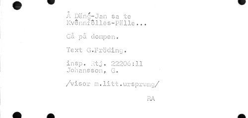 //// ° c / //// A Dana-Jan sa te Kvennfolles-Pälie *«. //// Gå på dompen. //// Text G/fröding. //// insp. Rtj. 22206:11 ¦Johansson, G. //// /visor m.litt.ursprung/ //// RA ////