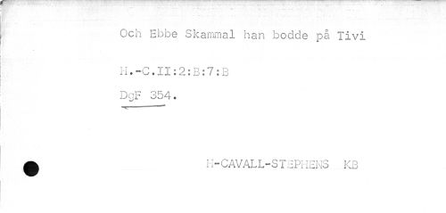 //// Och Ebbe Skarnmal han bodde på Tivi //// H.-C.II:2:B:7:B DgF 354. //// £ H-CAVALL-STEPHENS KB ////