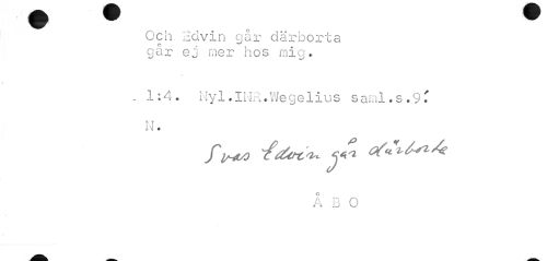 //// Och Hdvin går därborta går ej mer hos mig. //// . 1:4. Nyl.INR.Wegellus saml.s.9T N. //// ÅBO ////