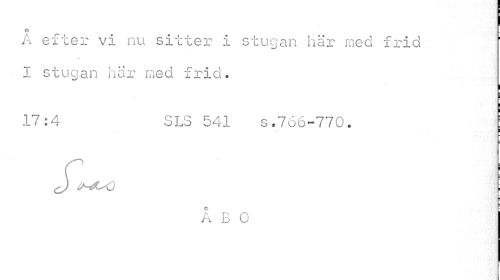 //// 0 \ //// A efter vi nu sitter i stugan här med frid //// 1 stugan här med frid. //// 17:4 SLS 541 s.766-770. //// c t //// A B O ////