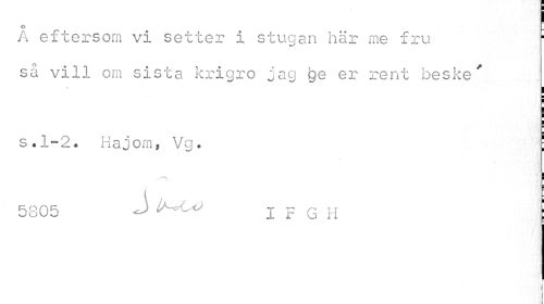 //// I //// o //// A eftersom vi setter i stugan här me fru : //// så vill om sista krigro jag ge er rent beske' //// s.1-2* Hajom, Vg. ' //// ^ a //// 5305 J l/^LyJ I F G H ! //// r i //// i //// i ////