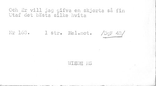 //// Och Er vill jag gifva en skjorta så fin Utaf det bästa silke hvita //// Nr 163« 1 str. Mel.not. /DgF 48/ //// WIEDE MS ////