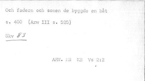 //// Och fadern och sonen de byggde en båt s. 400 (Arw III s. 525) //// 3 kv //// ARW. US KB Vs 2:2 //// % //// V ////