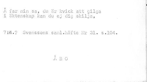 //// ! //// A far min sa, du är kvick att giiga i äktenskap kan du ej dig skilja, //// 7i. 4.? Svenssons saml.häfte Nr 31. s.104. //// ÅBO //// j ////