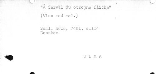 //// o //// "A farväl du otrogna flicka" (Visa med mel.) //// Sdml. Hölö, 7481, s.114 Dencker ////