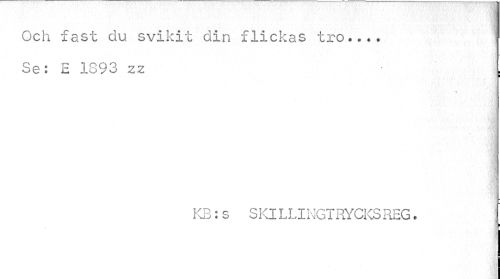 //// m • ' v ¦ \\ «-,• < ' ' k f K v • V> - *» ' \ tf »V ' -f ' - r ' ' . • " - //// Och fast du svikit din flickas tro... //// Se: E 1893 zz //// « //// KB:s SKlLLINGTRYCKSREG. ////