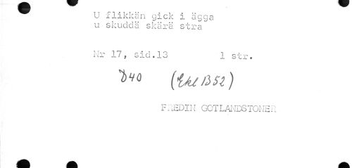 //// w U flikkän gick i ägga //// u skudda skära stra //// Nr 17, sid.13 1 str. //// ^O (U/tist) //// FREDIN GOTLANDSTONER ////
