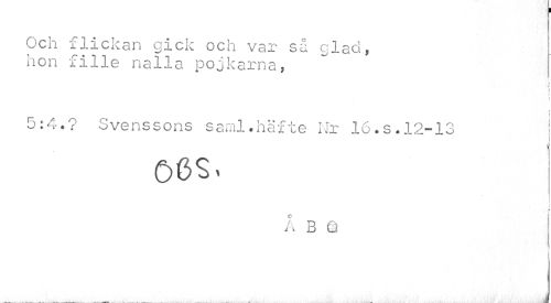 //// Och flickan gick och var så glad, hon fille nalla pojkarna, //// i //// r //// I //// [ //// # f 1 //// 5:4.? Svenssons saml.häfte Ur 16.s.12-13 i //// | //// I //// A B Q ////