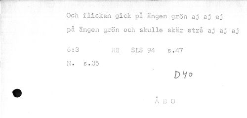 //// Och flickan gick på ängen grön aj aj aj på ängen grön och skulle skär strå aj aj aj //// 6:3 RE SLS 94 s.47 //// t\t o ^ r //// * b ? jJ //// bi* //// ÅBO ////