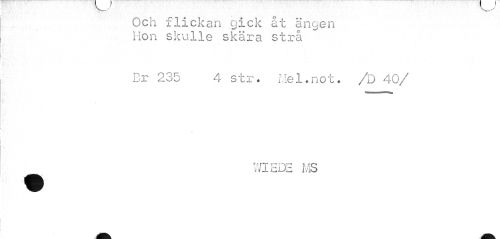 //// Och flickan gick åt ängen Hon skulle skära strå //// Br 235 4 str. Mel.not. /D 40/ //// f? TT r^Tvr* T./TO //// V/lcUc MO ////