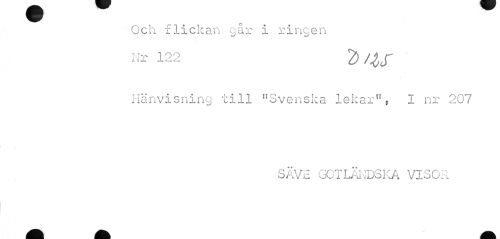 //// Och flickan går i ringen Nr 122 2 //// Hänvisning till "Svenska lekar", I nr 207 //// SAVS GOTLÄNDSKA VISOR ////