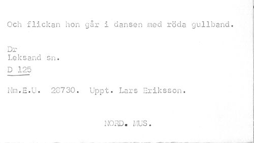 //// Och flickan hon går i dansen med röda gullband. //// U £ //// Leksand sn. D 125 //// Nm.e.U. 28730. Uppt. Lars Eriksson. //// NORD. MUS. ////