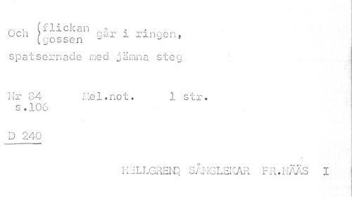 //// r. , (flickan //// Ocn ) ^^ gar i ringen, (gossen - //// spatsernade med jämna steg //// Nr 8 4 b le 1 .not. 1 str. //// s .106 //// * //// D 2.40 //// " j //// * //// HHLLGREN3 SÅNGLEKAR FR.NÄAS I ////