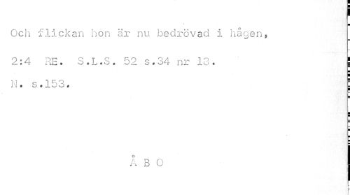 //// I //// Och flickan hon är nu bedrövad i hågen, //// 2:4 RE. S.L.S. 52 s.34 nr 13. j //// 11 * s ? 1 b o« t //// ¦ //// ¦ //// L //// ÅBO ////