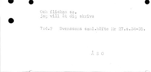 //// » //// Och flickan sa, ^ jag vill åt dig skriva //// 7:4.? Svenssons saml.häfte Nr 27.s.34-35. //// Å B O ////