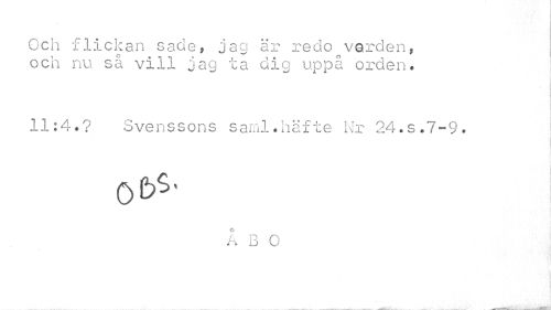 //// ¦ //// Och flickan sacle, jag är redo vorden, och nu så vill jag ta dig uppå orden. //// 11:4.? Svenssons saml.häfte Nr 24.S.7-9. I //// k 3 0 //// ¦ //// ¦' i //// • % ////