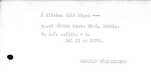 //// . //// ¦ //// * ¦» //// . //// o //// A flickan till höger --- //// sj.af Mårten Karo. Wörå, Reikip. //// W. 3.7. n.Sjöb. - m. //// Del II nr 1274. //// RANCKEN FÖRTECKNING ////