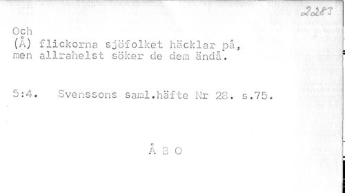 //// :: Mtrs //// Och //// (¦A) flickorna sjöfolket häcklar på, I //// men allrahelst söker de dem ändå. ^ //// 5:4. Svenssons saml.häfte Nr 28. s.75. //// 4 //// Å 3 0 //// ¦ ////